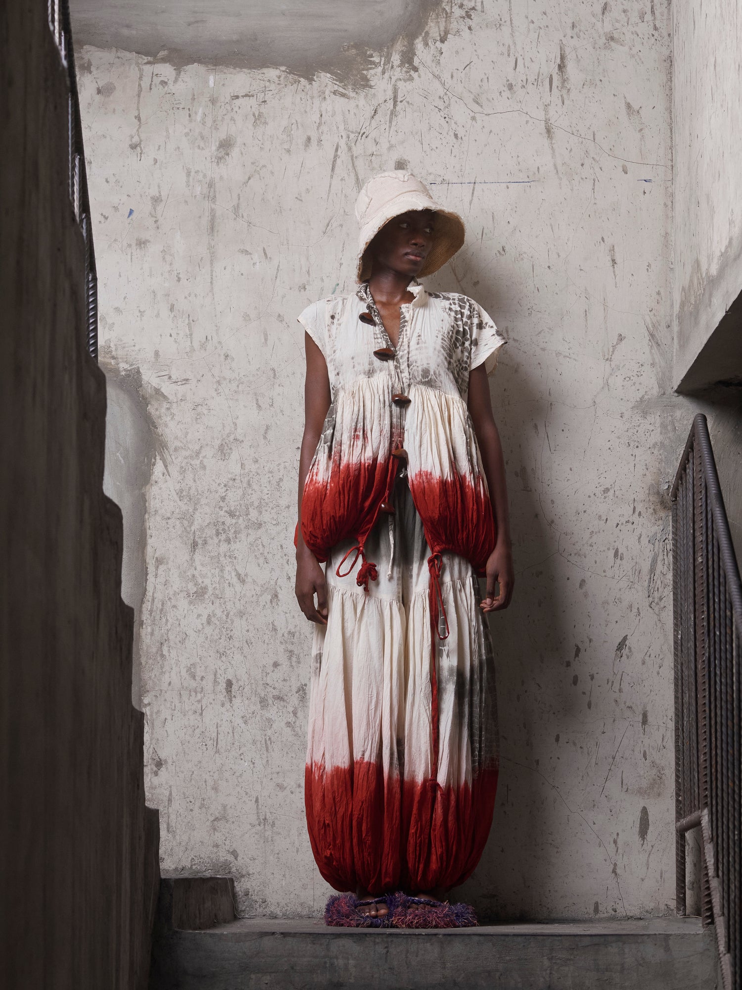The Ọ̀bara Bubble Top is a study in form, movement, and hand process. Made from lightweight cotton and hand-dyed using layered natural pigments, the Top features a softly structured bubble pant paired with a relaxed, button-front top. Gentle gathers and adjustable ties create volume without weight, allowing the fabric to move freely with the body.