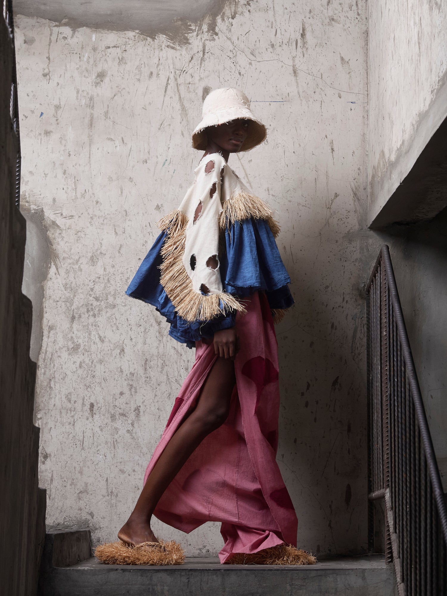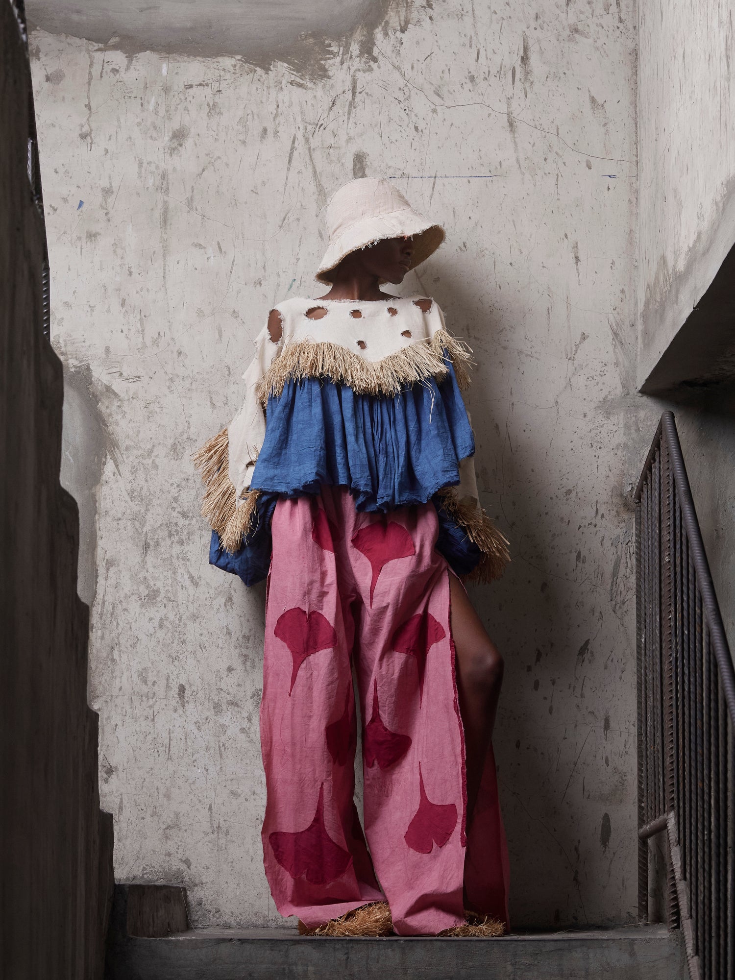 100% cotton, 100% raffia