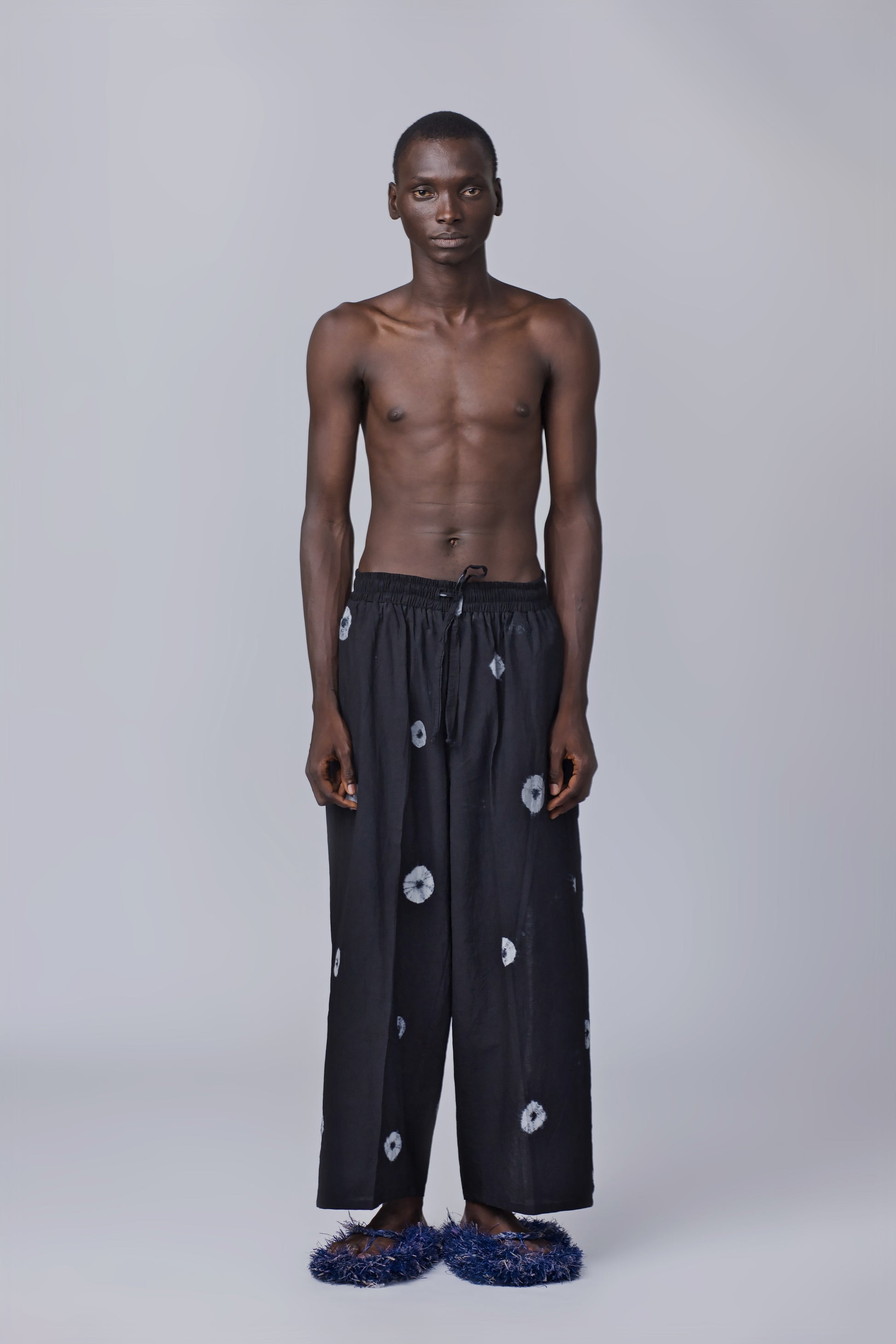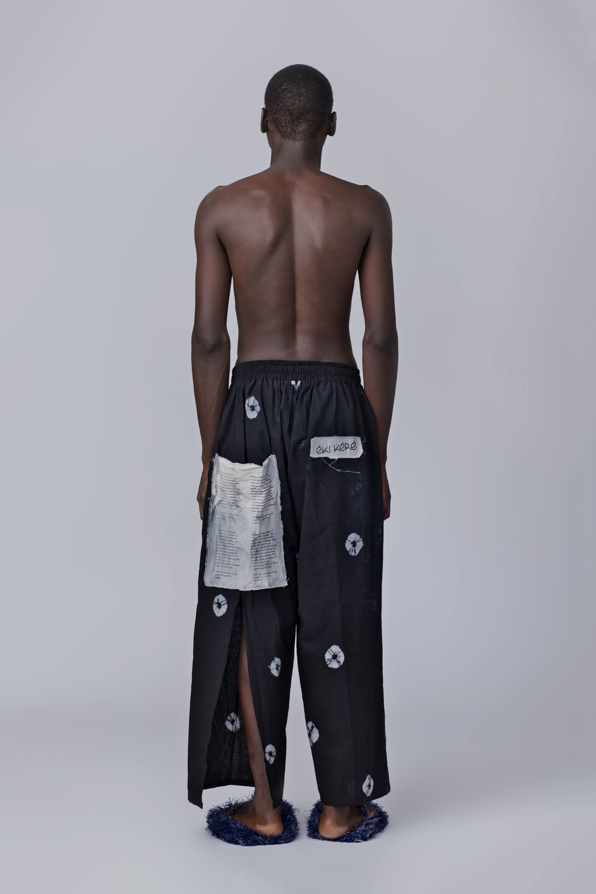 Add a touch of uniqueness to your wardrobe with our hand-dyed tie dye pants, complete with a distressed patch pocket and a stylish rear slit. Ideal for those who dare to be different.
