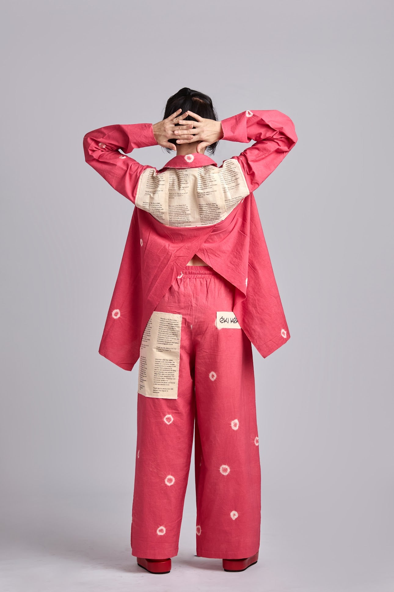 Bo Tie Dye Pants with Patched Pocket and Back Slit-PINK