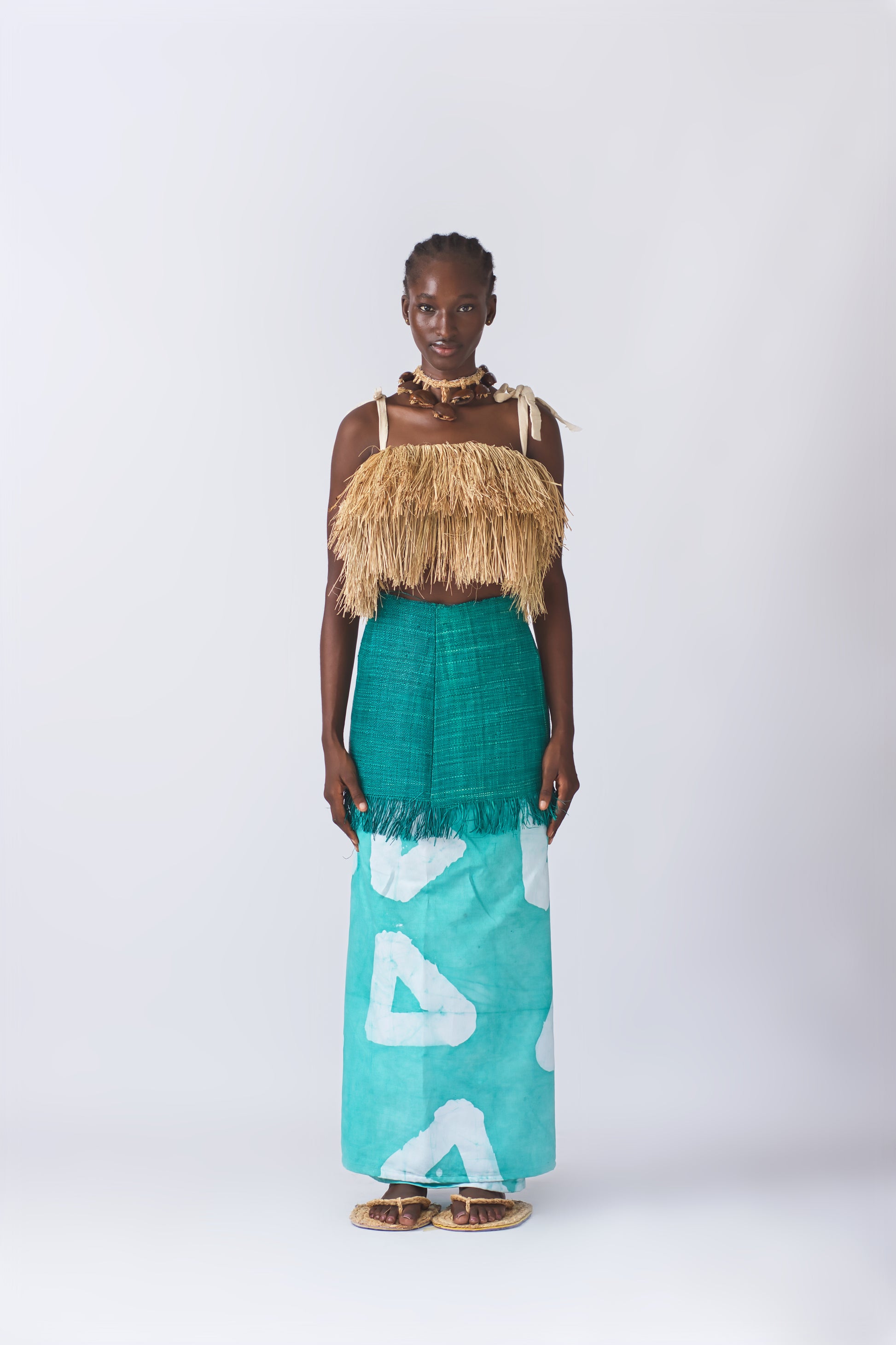 Our Raffia Wrap Skirt is a testament to the beauty of traditional craftsmanship and sustainable fashion. Hand-loomed raffia mat, carefully woven by skilled artisans, forms the foundation of this stunning piece. The raffia mat is then paired with vibrant batik print cotton fabric, creating a harmonious balance of texture and color.