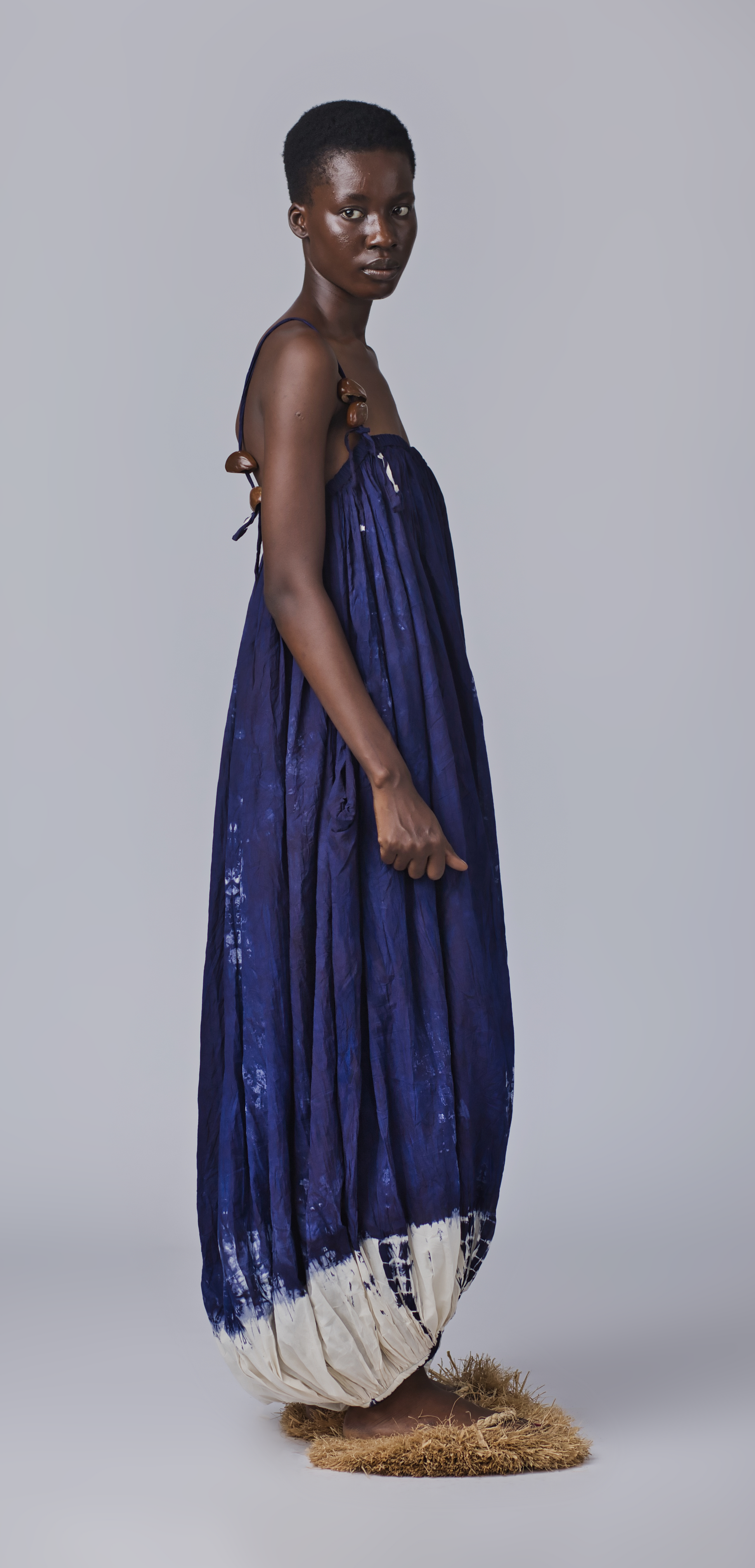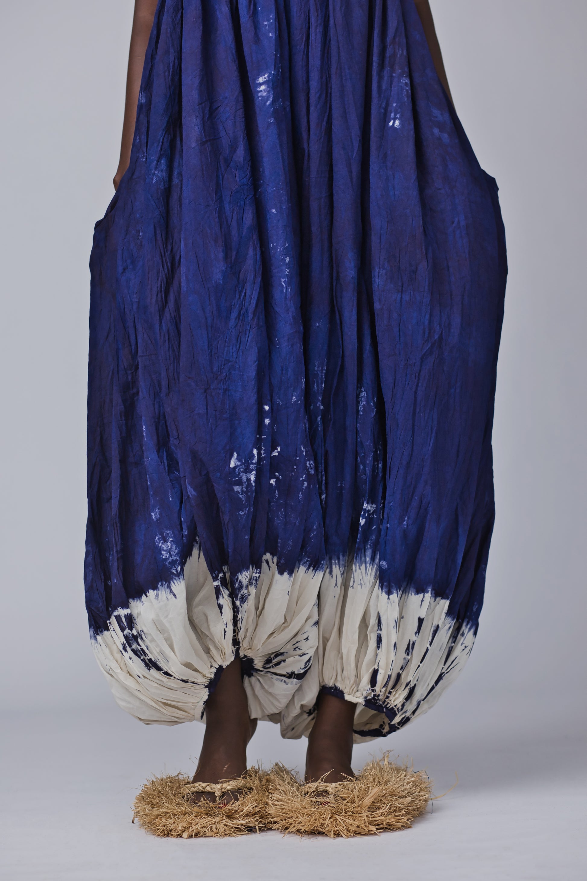 Shop our stunning sleeveless bubble jumpsuit featuring a vibrant tie and dye print detail at the bottom hem and delicate uyot seed accents. Perfect for formal events, parties, or making a statement at any occasion.