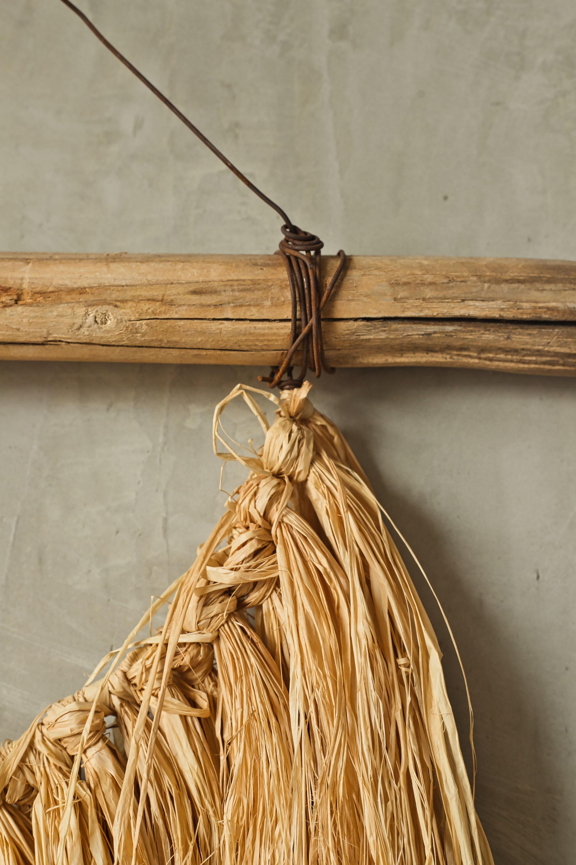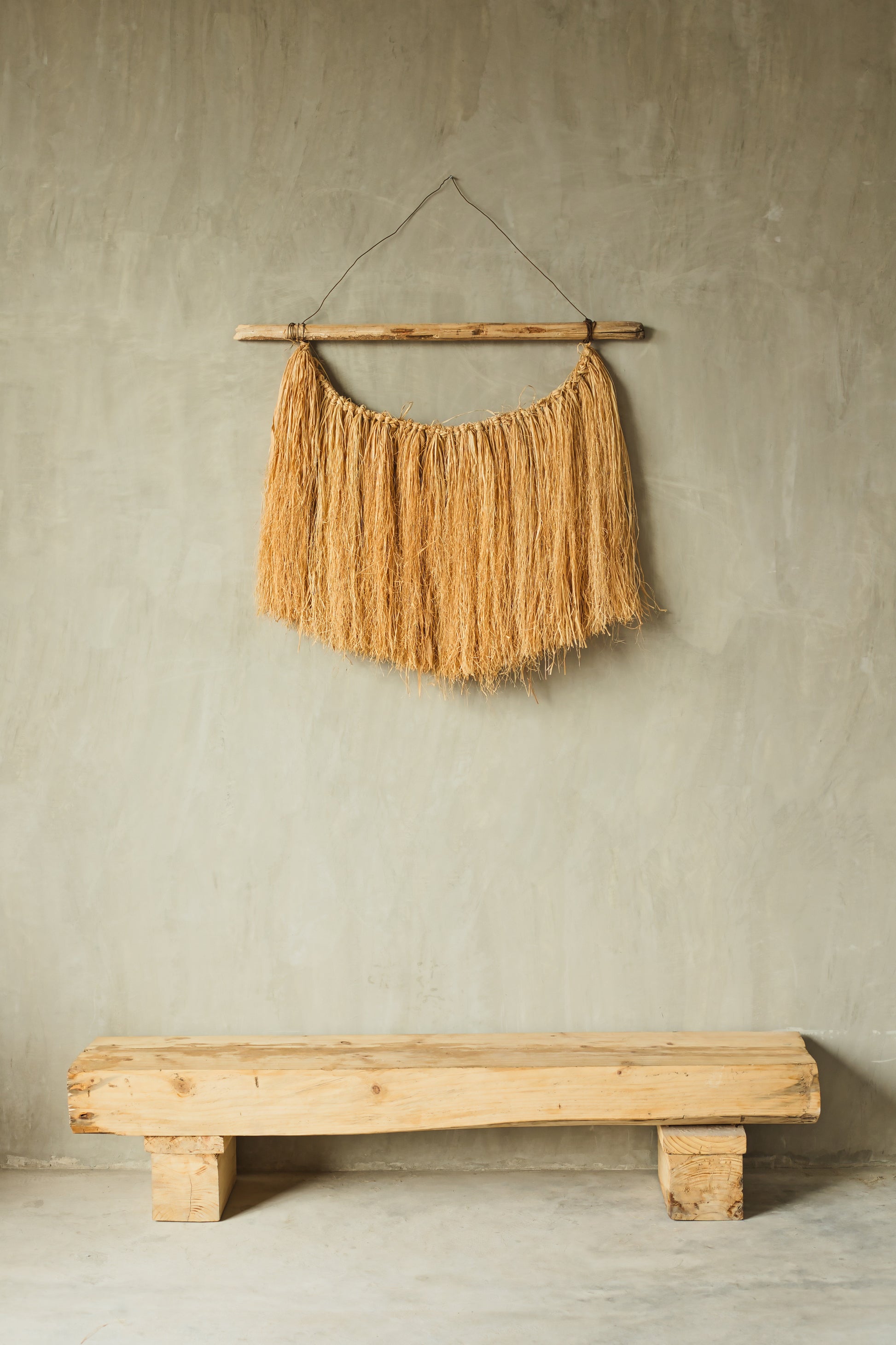 Crafted from natural raffia assembled on lightweight wooden base