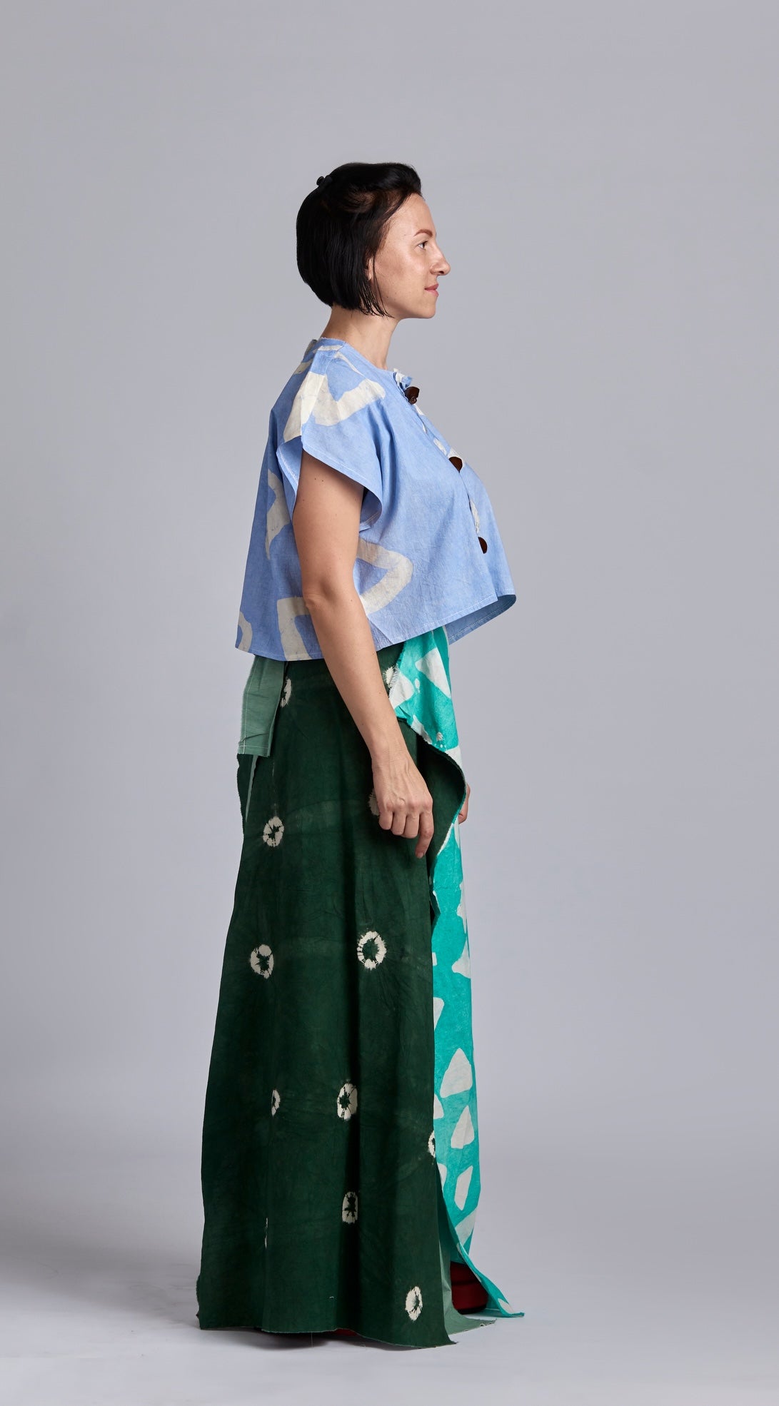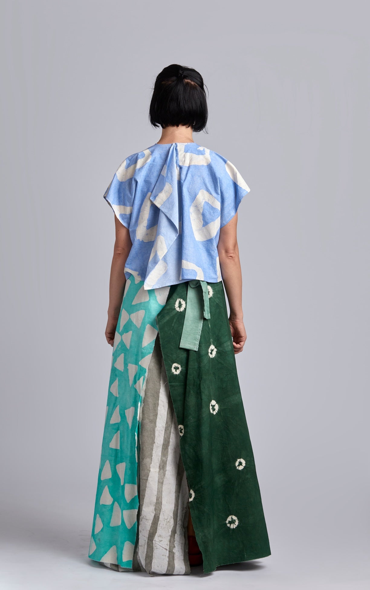 Add a touch of whimsy to your wardrobe with this gorgeous multi-colored batik wrap skirt. With its vibrant colors, intricate patterns, and flowy design, this skirt is perfect for anyone who wants to make a bold fashion statement.