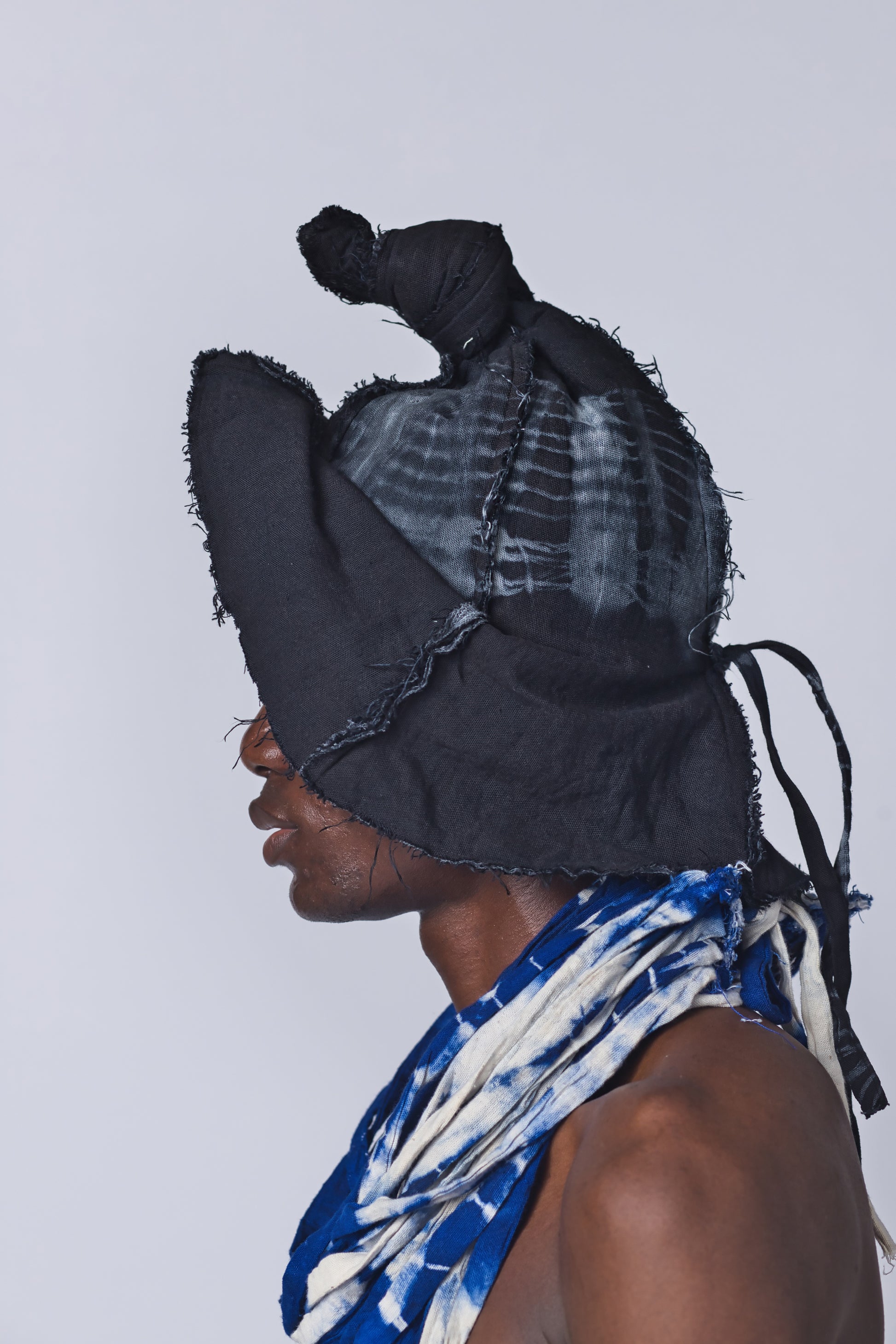 ITAM AGBON TIE AND DYE KNOTTED BUCKET HAT (BLACK)