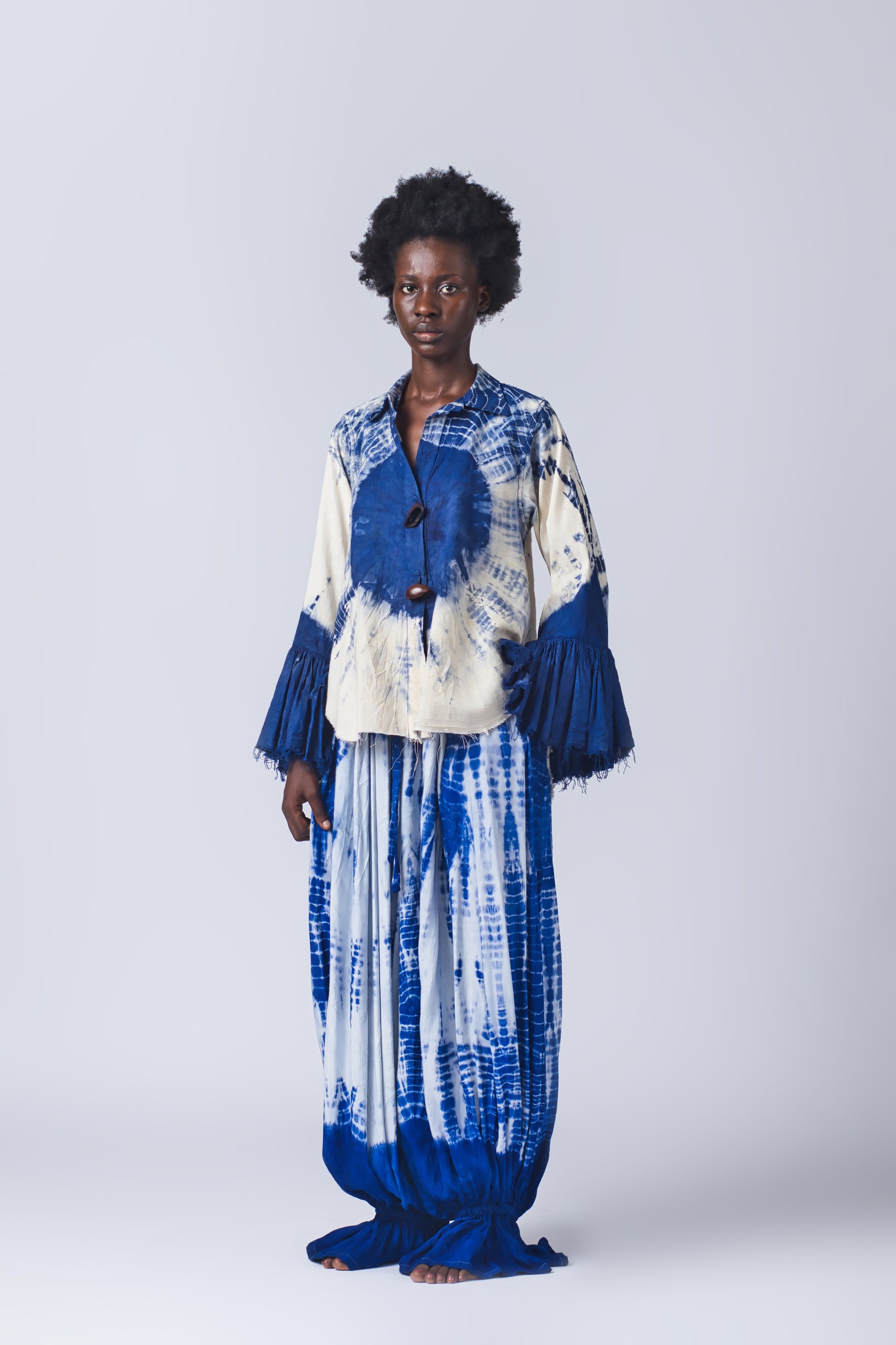 Groovy vibes only in our tie-dye blue pant, featuring a unique and eye-catching print that's perfect for making a statement.