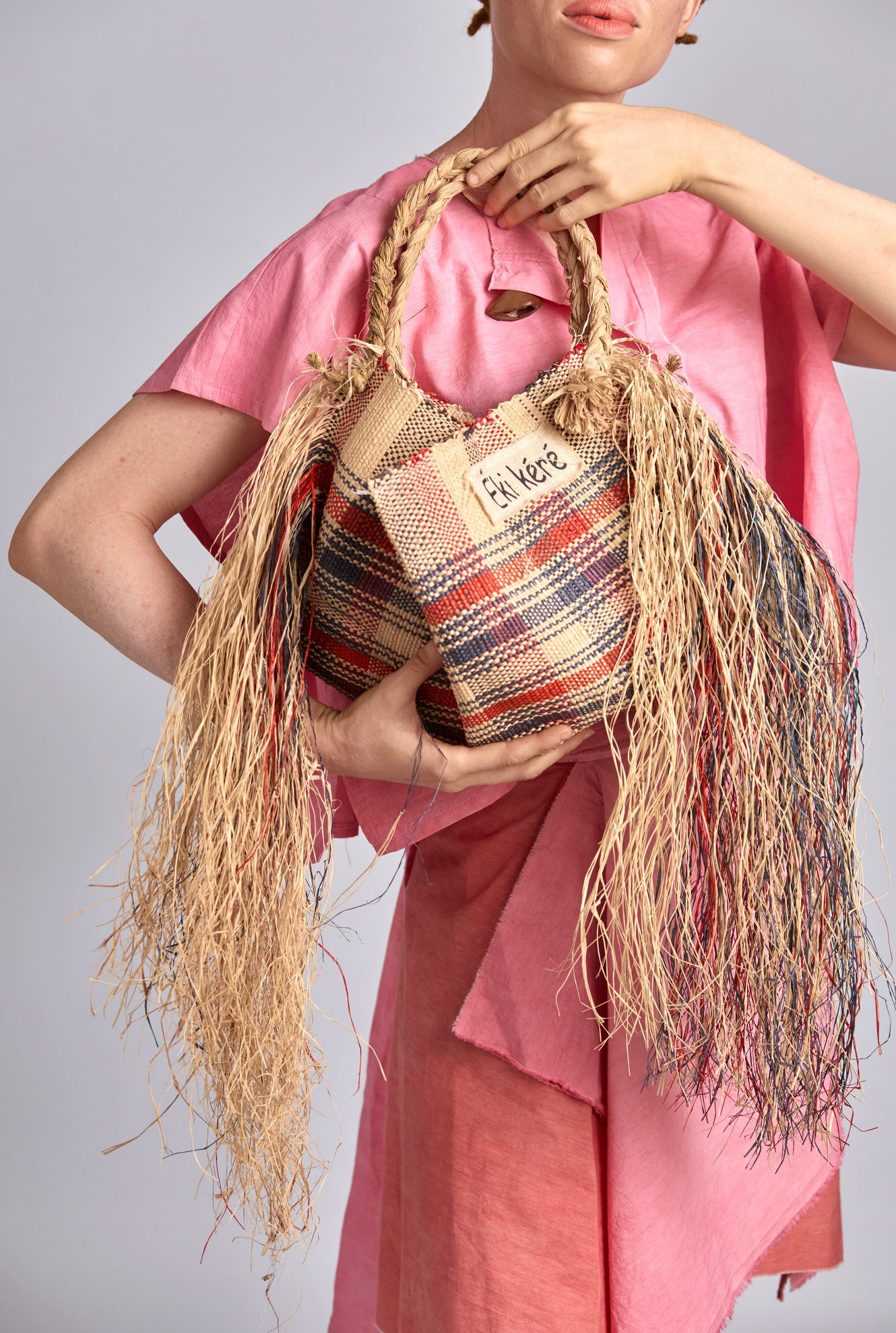 Handles: hand dyed woven raffia straw