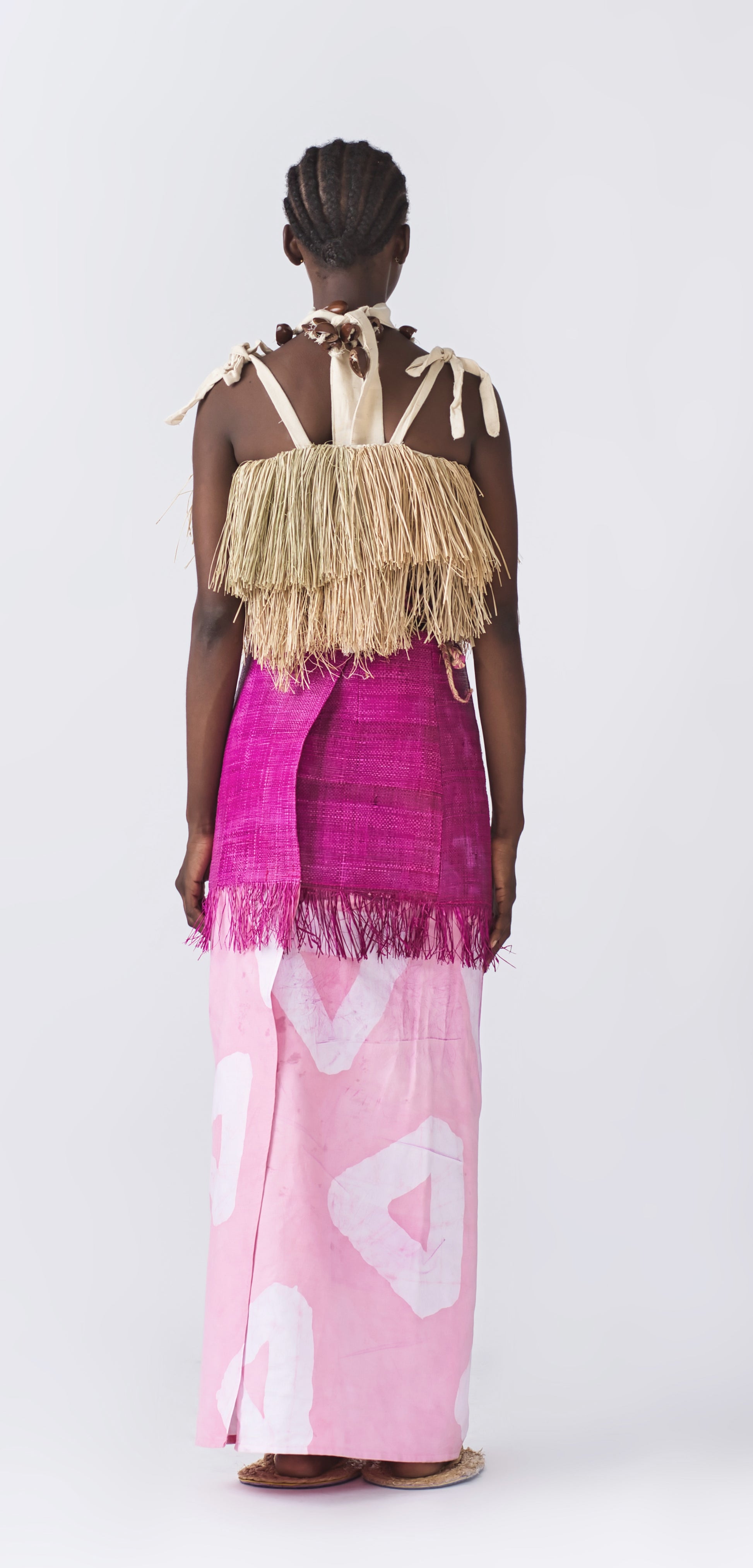 Our Raffia Wrap Skirt is a testament to the beauty of traditional craftsmanship and sustainable fashion. Hand-loomed raffia mat, carefully woven by skilled artisans, forms the foundation of this stunning piece. The raffia mat is then paired with vibrant batik print cotton fabric, creating a harmonious balance of texture and color.
