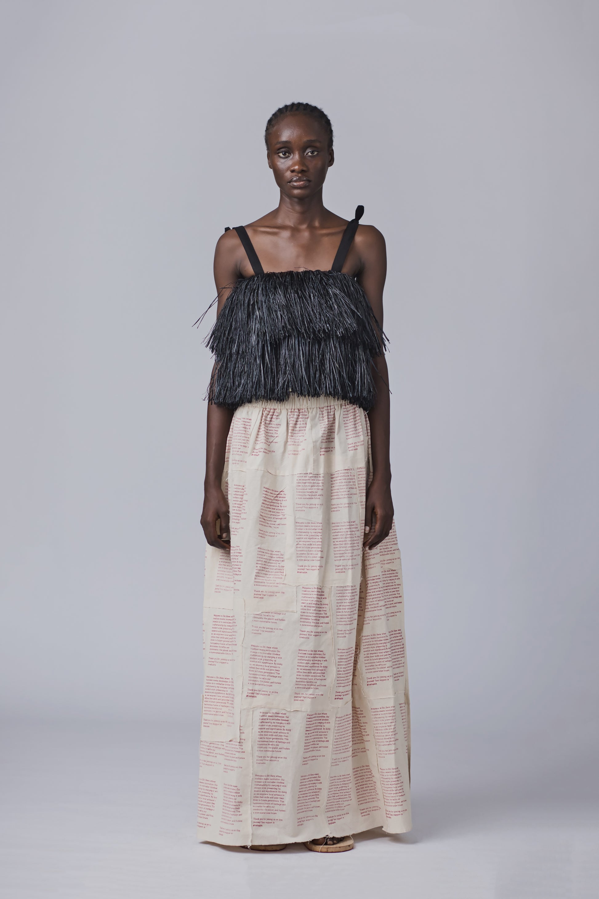 This handmade raffia crop top is everything you think it is. Combine with bold accessories to put the exclamation in your fashion statement.