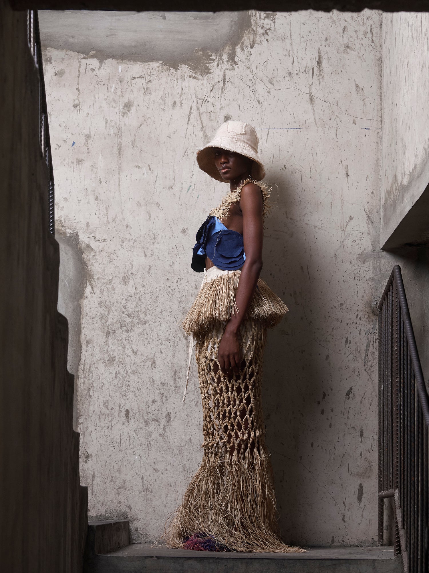 Handwoven from natural raffia, the Chinwe Skirt is a study in movement, texture, and tradition. Featuring an open lattice weave and a soft fringe detail at the waist, it sits lightly on the body while creating bold, sculptural flow with every step. Rooted in ancestral craft and reimagined for the contemporary woman, this piece is both expressive and timeless—designed to be worn as art, ritual, and statement.