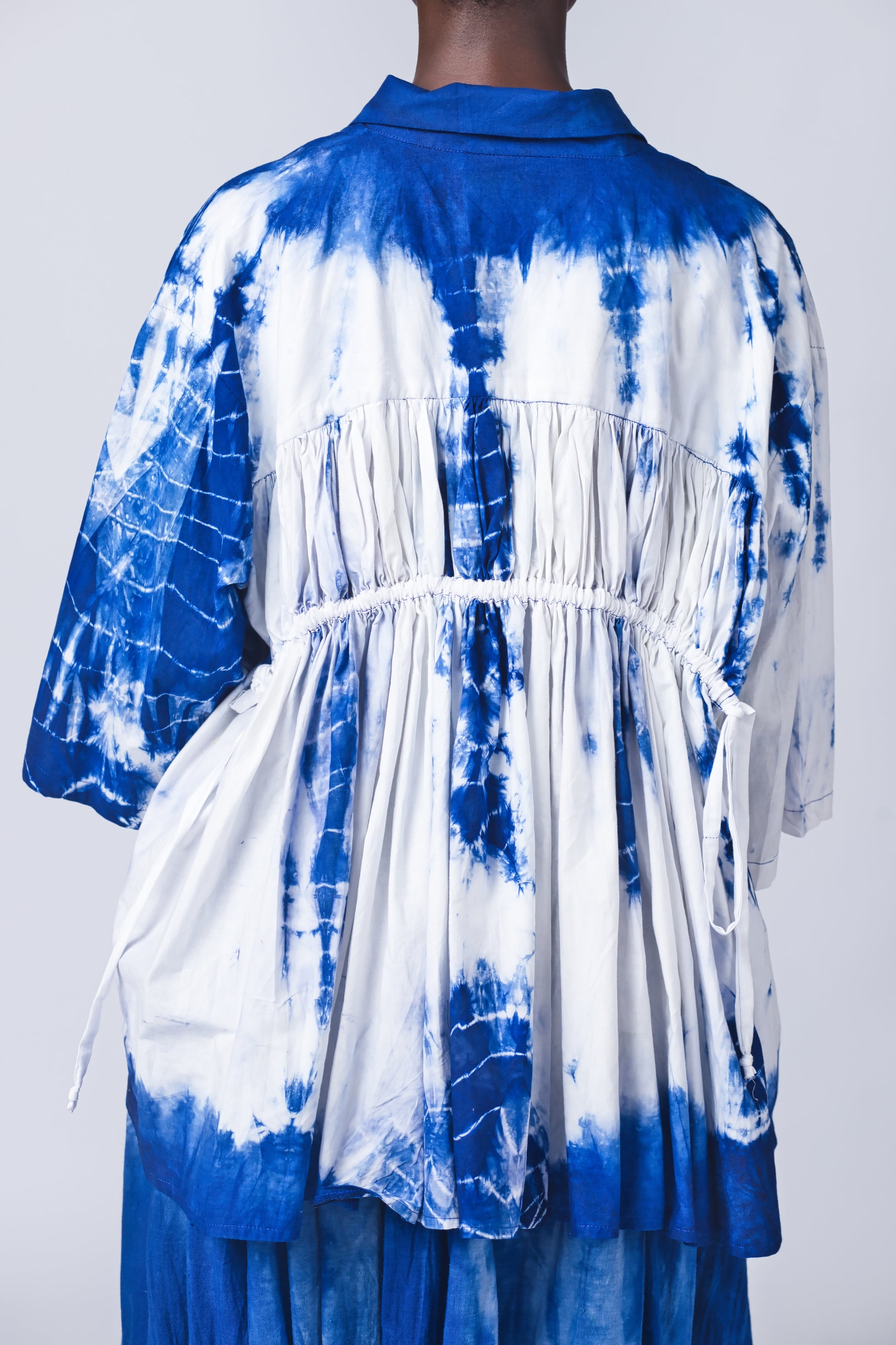 Make a statement with our show-stopping tie-dye full silhouette shirt, featuring intricate rope details that add a touch of bohemian charm. The vibrant tie-dye print and flowy silhouette create a stunning combination, perfect for making a dramatic entrance.