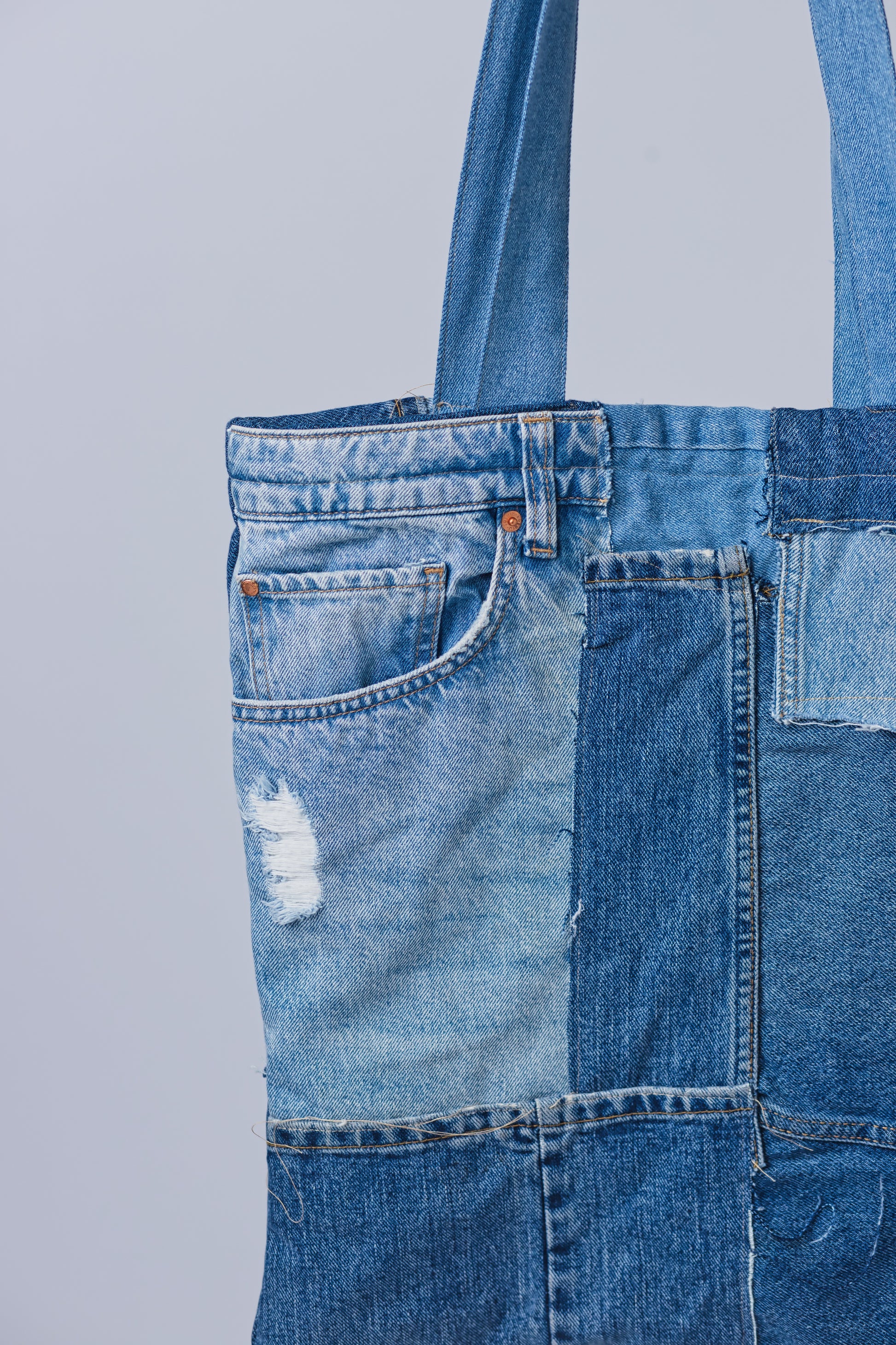 Meet your new beach buddy - this upcycled jean tote bag from our Jean Upcycled Collection! Not only is it perfect for carrying all your essentials to the shore, but it's also a sustainable choice that helps reduce waste and protect the planet. Join the eco-friendly movement, one bag at a time!