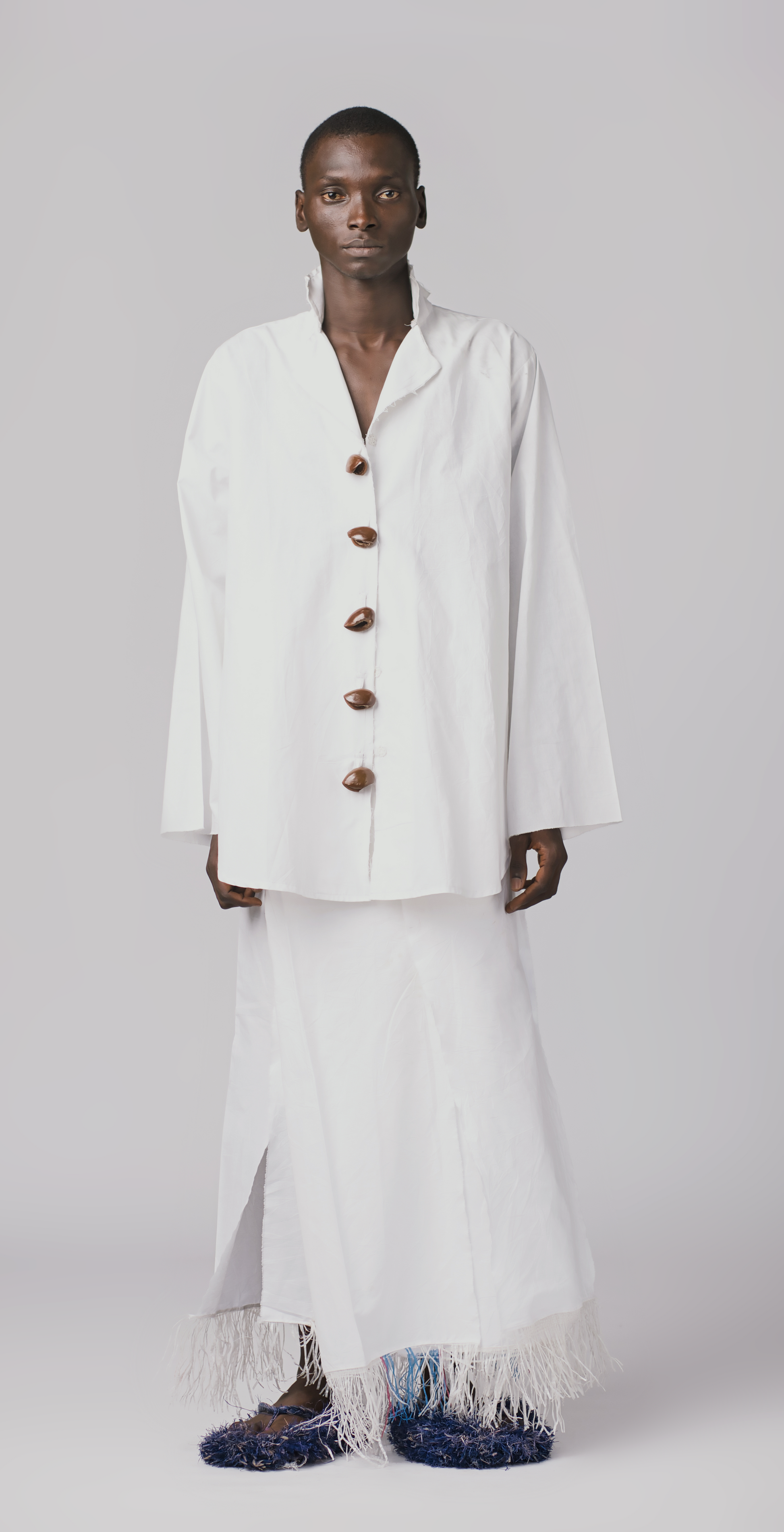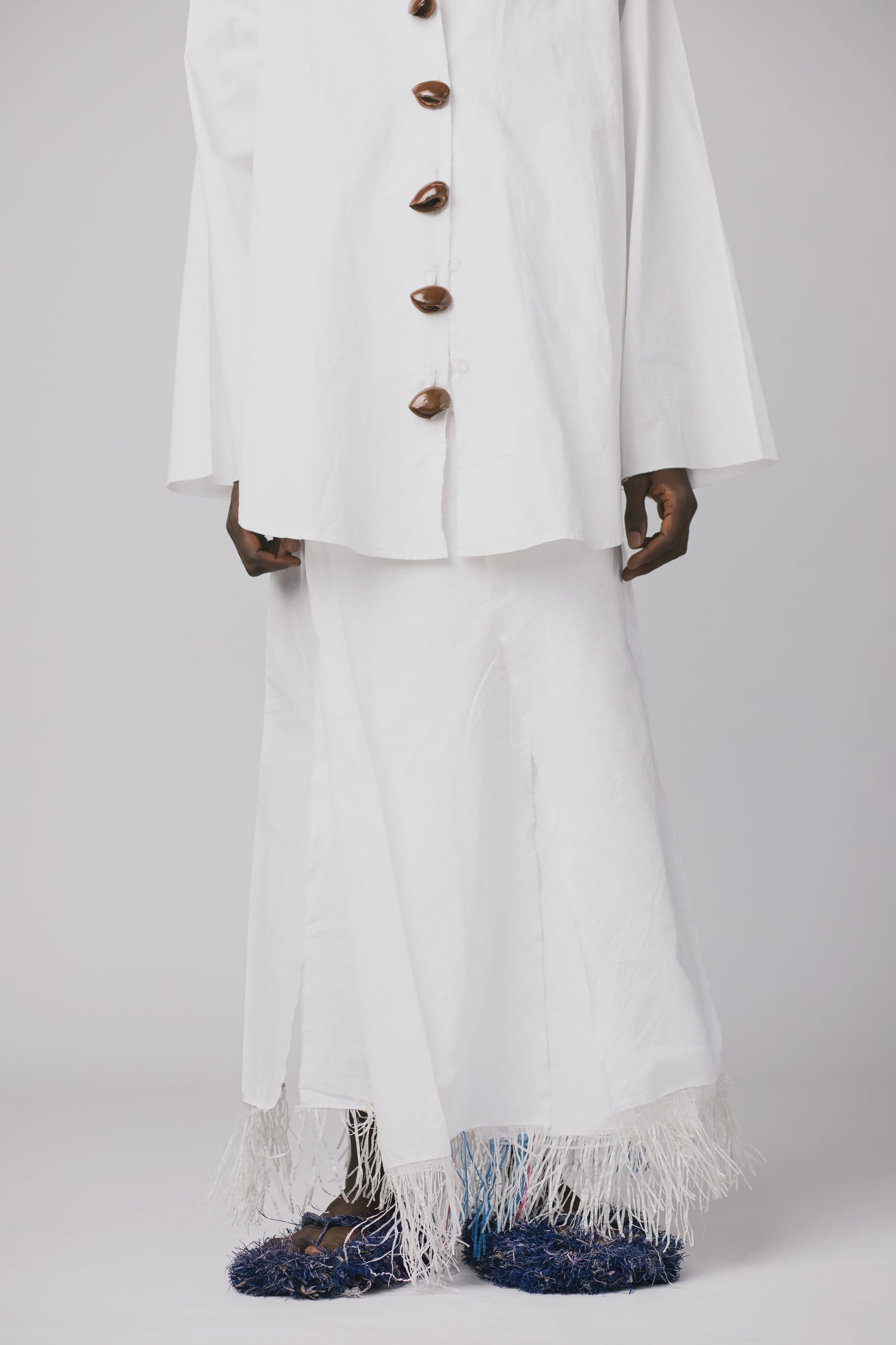 Elevate your style with our 100%cotton wrapped skirt, featuring polyester fringe details from recycled sac bag.